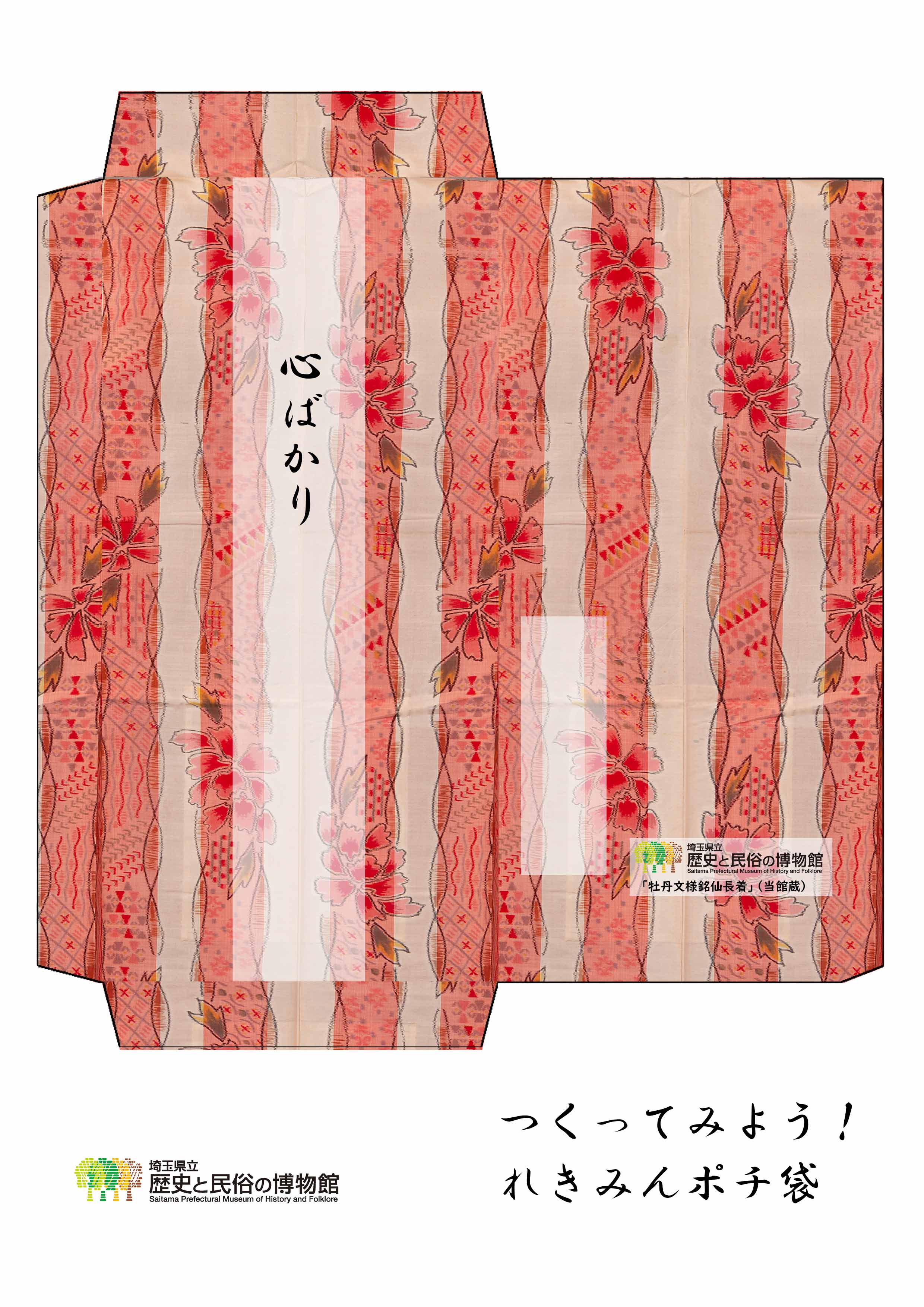 | 大正時代から戦前にかけて、「銘仙」と呼ばれる絹織物の着物が女性たちの間で大流行しました。 その「銘仙」から、当館収蔵の「こぼれ桜文様銘仙長着」の柄をポチ袋にしました。出会いと別れの季節にぴったりな桜の文様をお楽しみください。 |
